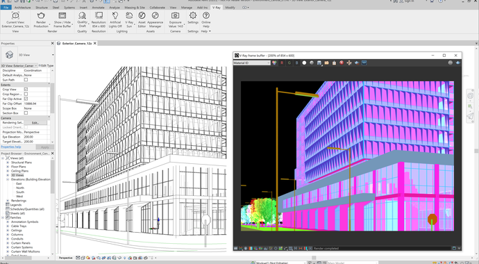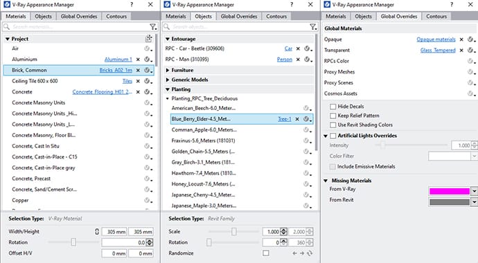 Work smart without altering your BIM database. Use your Revit families as stand-ins for all V-Ray objects.