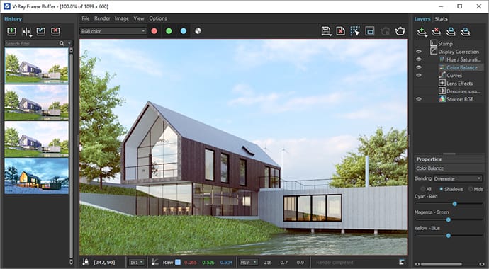 Track history of your rendered images, fine-tune their color parameters and save them directly to your Revit project. Use the new layer-based compositor to do color corrections of final renders and save your presets for future projects.