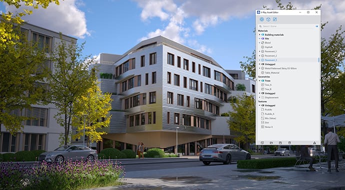 Create, edit, save and manage your V-Ray materials all in one place with the Asset Editor. Assign materials to a new proxy object, save it in the Editor and reuse this configuration in any project.
