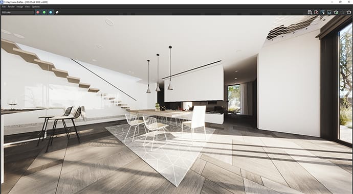 Explore and refine your 360° spherical renders directly within the V-Ray Frame Buffer. When in panorama mode, the preview output is presented as a mono image, making it simple to make edits.
